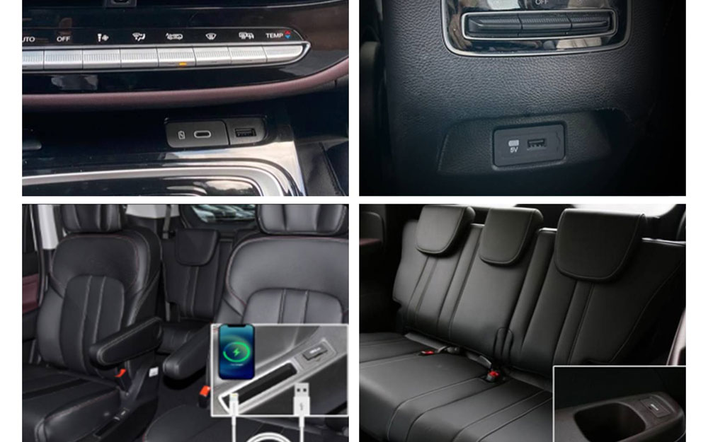 | Hàng ghế 1: TYPE C (1 cổng) & USB (1 cổng) + Phía sau bệ tỳ tay giữa: USB (1 cổng) + hàng ghế 2: USB (1 cổng) + hàng ghế 3: USB (2 cổng) | 6 Cổng | |